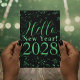 Cartão De Festividades Hello New Year! Happy New Year Green Black Sparkle