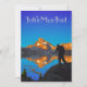 Arte estilizada de caminhoneiro sobre o lago de mil ilhas e o pico de Banner no nascer do sol com o texto "John Muir Trail". Califórnia, Serra Nevada, Ansel Adams Wilderness, lago de milhares de ilhas. John Muir Trail Mile 044.