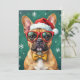 Cartão De Festividades Hipster French Bulldog Santa Glasses Modern