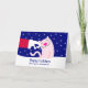 Sweet cat is smiling as he leans into Santa's hand rubbing his head. Christmas card for any pet care professional: veterinarian, animal clinic, cat sitters.