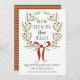 Holiday Wreath Decking The New Halls Moving Announcement Card with Pattern Back in Red and Green