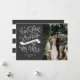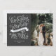 Celebre seu primeiro Natal como um casal casado com este cartão festivo de fotos de solteiro. Ele apresenta uma saudação à mão à esquerda e espaço para uma foto à direita.