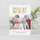 Este design apresenta as palavras "desejos de feriado" em uma fonte colorida, pastel, semelhante a giz, em um fundo branco. Sua foto e saudação estão realçadas abaixo.
