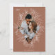Um cartão de Natal moderno e elegante que emoldura sua foto vertical ou orientada para retrato em uma moldura em forma de diamante lindamente detalhada com folhas de azevinho, frutos e folhas de inverno em um rico fundo marrom canela com tons terrosos. "JOY" aparece no canto superior esquerdo, com o nome da sua família ao longo da parte inferior. O ano é elegantemente inserido na moldura botânica branca finamente detalhada. Uma escolha delicada e refinada, inspirada na natureza, para os seus cartões de Natal de 2021.