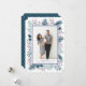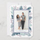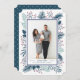 O design moderno e elegante cartão de feriado da Redwood & Vine apresenta sua foto vertical favorita emoldurada por uma borda azul de meia-noite com botânicos cúbicos saindo pelas bordas, incluindo os caçadores de pinheiros verdes, folhas verdes sábias e frutos vermelhos brilhantes. Personalize com sua mensagem personalizada (mostrada com "desejos mais quentes") e seus nomes em blocos clássicos, na moda e itálico.