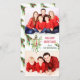 Suas próprias fotografias tomam as posições de cima e de baixo neste cartão com fotos festivo de Férias. Entre as fotografias está uma bonito imagem aquosa de uma lanterna de Natal enfeitada. Seu texto personalizado está vermelho e verde de um lado. A parte traseira da placa tem um padrão holly repetitivo correspondente. *Crédito de Design para EphrazyDesign.