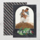 Holly Branch Modern Arch Marinho Stripes Cartão de Feriado Personalizado de Foto Você pode Mudar a Palavra Paz para Alegria, Esperança, Amor ou Qualquer Coisa Que Quiser, vem com um Marinho de Prata Clássico