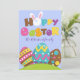Hoppy Easter Eggs Rabbit Engraçado Nome Personalizado Texto Feriado Cartão de Férias de Texto para desejar aos seus amigos e família o melhor para os feriados em um estilo de desenho animado engraçado