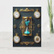 Greet the New Year with a steampunk vibe! This card has pocket watches and an hourglass with bright, blue sand, overlaid on some intricate watch springs or gears. Elegant and simple.