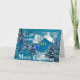 Blue & white house in woods Christmas card.