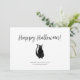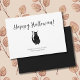 Cartão de Boas Festas de Halloween simples, com uma ilustração de gato preto e letras personalizáveis. Uma maneira fofa de enviar votos de férias divertidos.