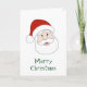 Uma ilustração do estilo cartoon de Papai Noel com um rosto alegre na frente com um tipo/caixa de texto dizendo 'Feliz Natal' embaixo e dentro de caixas de texto, que pode ser alterado para personalizar.