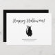 Cartão de Boas Festas de Halloween simples, com uma ilustração de gato preto e letras personalizáveis. Uma maneira fofa de enviar votos de férias divertidas.