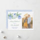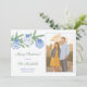 ** Crédito da fotografia: Fotografia © Storytree Studios, Stanford, CA ** / design de cartões de fotos de feriado com uma ramificação de árvore de abetos decorada com baubles de padrão de chinoiserie azul e branca. O verso apresenta um padrão de chave grega azul e branca. Se preferir, você também pode adicionar sua própria foto horizontal ao contrário.