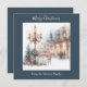 Este cartão clássico de Natal é o cartões de natal perfeito e simples. O design de Watercolor apresenta uma cena numa cidade italiana com galhos de árvores de Natal, lâmpadas, presentes e uma tipografia emparelhada com uma letra elegante com letra escrita escrita com estilo manuscrito. Em fundo de cinza azul, personalize o cartão com seu nome.
