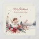 Este doce anjo do cartão de Natal é o perfeito cartões de natal simples. O design de Aquarela apresenta um pequeno anjo com ramificações de árvores de Natal, uma paisagem nevada e uma tipografia emparelhada com uma letra elegante com estilo manuscrito. Em fundo de creme azul, personalize o cartão com seu nome.