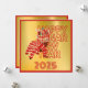 Linda imagem dividida mostrando uma dança de leão chinês à esquerda e palavras transparentes Feliz Ano Novo Lunar à direita. O contorno vermelho das palavras corresponde à dança do leão vermelho, simbólica da sorte, da felicidade e da prosperidade. Impresso sobre um fundo brilhante como uma folha de ouro, este cartão dá uma reviravolta moderna e moderna à saudação tradicional chinesa de Ano Novo.