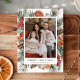Mande cumprimentos festivos com este Elegante Cartão de Férias de Natal Feliz para Citros Botânicos. O design vertical destaca a foto de sua família enquadrada por água-colorida verde e botânica sazonal, incluindo galhos de pínus, eucalipto, pinecones, bagas e fatias secas de citros. "Feliz Natal" é apresentado em letras clássicas de serifa com o nome da sua família mostrado abaixo. A parte traseira da placa oferece espaço para a sua mensagem de feriado personalizada e uma foto adicional, combinando detalhes de bô rústico com elegância de feriado de eterno.