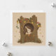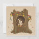 Uma ilustração fofa de um geleia numa árvore oca coberta de folhas coloridas