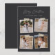 Adicione elegância casual aos seus cartões de natal com estas belas cartas desenhadas para acomodar quatro fotos quadradas. As fitas emprestam uma sensação legal de instantâneo a este design simples e elegante (nota: a fita é uma imagem impressa, e não um adesivo real afixado no produto). "Feliz Natal" aparece em um roteiro de letras brancas, com seu nome de família e ano abaixo, em um fundo preto suave.