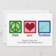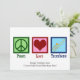 Cartão personalizado de Paz Amor Trombone para um membro da banda marcial que adora tocar um instrumento de sopro. Um sinal de paz, coração e trombone fofo em cartões de Natal personalizados.