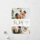 Elegante cartão de férias de 3 fotos com um visual limpo e moderno, apresentando gráficos em dourado e verdejante, com um padrão dourado botânico de inverno no verso.