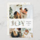 Cartão De Festividades JOY Elegante 3 Fotos Verde Dourado Natal