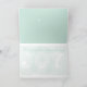 Red and light minty green with mistletoe in corners. Inside reads 'Repeat the Sounding JOY'.