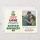 Joy Love Peace Giving and Kindness - sentimentos maravilhosos e inspiradores para cartões de natal. Letra moderna em forma de árvore com uma estrela brilhante no topo. As cores dos natais vintages incluem tons de vermelho, verde, azul e rosa para um cartão com fotos de feriado personalizado distinto. Esta placa horizontal inclui uma foto. Você pode personalizar a mensagem, os nomes e a linha adicional para mais nomes ou qualquer outra coisa que você queira adicionar. A parte traseira desta placa apresenta um design ondulado no mesmo esquema de cor que a parte frontal da placa. Rótulo de Endereço de Devolução Wavy Star disponível.