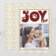 Celebre o Feriado com este cartão com fotos chic, fofo e adorável e minimalista com seu animal de estimação apresentando as patas de cachorro " JOY " em um padrão de tosse de pinheiro dourado. Abaixo, a foto apresenta sua mensagem de saudação personalizada e seus nomes e nomes de cachorro na tipografia moderna. Feliz feriados e Feliz ano novo!