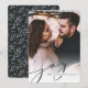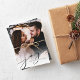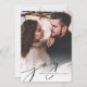 Nosso cartão com fotos de feriado simples e elegante apresenta sua foto vertical ou orientada para retrato favorita de cheio sangrando, esmaecendo para branco no fundo. "Joy" aparece como uma sobreposição de texto de script preto suave junto com seus nomes ou nome de família e o ano. Cartões invertem o padrão das folhas de inverno.