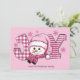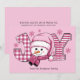 Bonito bonitão rosa e flocos de neve "JOY" Cartão de Natal/cartões de natal. Personalize com seu nome de família e qualquer outro texto escolhido.