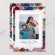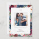 O design de cartão de férias "Ano Novo Joyful" floral de inverno elegante e moderno apresenta uma foto horizontal moldada por um padrão floral de aquarela rica com Bordéus / vermelho burgundy, azul marinho, rosa e natas com fundo de cinza de platina. A parte traseira da placa inclui uma segunda foto em forma quadrada e texto personalizado adicional que pode ser personalizado.