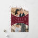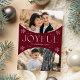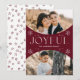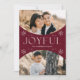 Deseje aos entes queridos uma feliz temporada de festas enviando-lhes um cartão de festas de tendências projetado por Late Bloom Paperie! O cartão de feriado exclusivo apresenta duas fotos dentro de um quadro fotográfico de arco oval colorido de amora. "Joyful" é exibido em letras brancas modernas, acentuadas por flocos de neve desenhados à mão. Personalize a frente do Cartões de foto de Natal adicionando seu nome. A parte de trás do cartão de feriado multifoto mostra um padrão de floco de neve de morango.