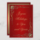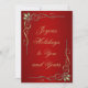 Cartão de saudação do shimmer pérola de 5" x 7" com uma imagem de lindos cantos de ouro joalhados em vermelho piscado brilhante. O sentimento personalizável diz "Festas alegres para você e para o seu." As costas estão a brilhar com ouro escovado com uma fronteira vermelha e o sentimento personalizável, "Desejando-vos a alegria da família, a felicidade dos amigos, e a maravilha da época de férias. Ver etiqueta correspondente, etiqueta quadrada e papel de embalagem. Veja toda a coleção do Cartão de Saudação de Natal na categoria CARDS & STICKERS na seção HOLIDAYS.