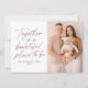 Cartão de Natal com fotografia moderno, com a frase "Juntos é um lugar bonito para ser", apresentado num roteirista escrito à mão com um fundo branco. Personalize o cartão de feriado simples com seu nome de família, ano e foto vertical. A carta se reverte para um padrão de floco de neve branco e arrojado.