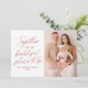 Cartão de Natal com fotografia moderno, com a frase "Juntos é um lugar bonito para ser", apresentado num roteiro manuscrito vermelho com fundo branco. Personalize o cartão de feriado simples com seu nome de família, ano e foto vertical. A carta se inverte para um padrão vermelho e branco de floco de neve.