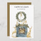 Cartão De Festividades Lareira de Natal Chão Dourado Elegante