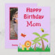 Deseje a sua mãe um feliz aniversário usando este cartão temático Safari adorável. Usando um fundo roxo claro, "Feliz Aniversário Mãe" é escrito em vermelho, com um leão, palmeiras, etc. Personalize com a foto da sua família no verso usando a borda ajustável. Escolha o seu hoje! Clipart: JoKavanaghDesigns https://www.etsy.com/shop/JoKavanaghDesigns Stock Foto: © Storytree Studios, Stanford, CA
