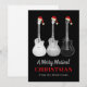 Tragam um pouco de alegria musical para a estação festiva com estas divertidas guitarras de pop preto, vestindo chapéus de natal. A tipografia moderna em vermelho e cinza é fácil de personalizar com o modelo. Adicione as suas saudações e crie um cartão de Natal único para os amantes da música, ideal para guitarristas, músicos, professores de música e entusiastas do rock and roll. Arte original da artista Catherine Sweetman