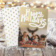 *SEM RELEVO* Espalhe alegria natalina com estilo com nosso cartão de Natal personalizado vertical moderno e elegante! Com uma sobreposição sofisticada em dourado falso e uma saudação ousada e manuscrita "Felizes Festas", este cartão faz com que seus votos de Natal brilhem. Tenha em mente que o "dourado" é uma cor impressa, não é um relevo dourado real, mas ainda assim é deslumbrante!