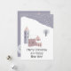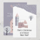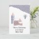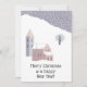 Igreja e casa modernas e caprichosas em um cenário de inverno com mensagem de Natal na frente e atrás - perfeito para através das milhas ou de nossa casa para a sua mensagem de Natal.