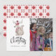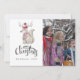 Cartão de Natal com foto da raposa do inverno na floresta com tipografia manuscrita personalizável para os seus detalhes.