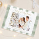Natal em Aquarela com Xadrez Verde - Elegante design de ilustração em aquarela texturizada com foto da família personalizada. Personalize com a foto da sua família, nome e ano.
