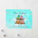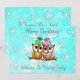 Cartão de Natal com dois bufões se aninhando em um galho com um lindo fundo de flocos de neve em azul turquesa e branco. Adicione seus nomes e mensagem personalizada na área de personalização.