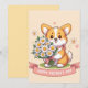 Cartão De Festividades Lindos Corgis de Desenho com Margaridas Feliz Dia