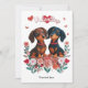 Surpreenda alguém especial com este adorável cartão do Dia dos Namorados com dois cachorrinhos dachshund fofos, cercados por corações de amor, flores e a palavra "Namorado" no topo. O charmoso design dos cachorros salsicha captura a alegria e o afeto do feriado de uma maneira divertida e caprichosa. Personalize o cartão com sua própria mensagem abaixo da imagem, tornando-o um presente ainda mais especial para seu amor. Ideal para fãs de dachshunds e amantes de cães, este cartão certamente vai deliciar no Dia dos Namorados.