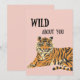 Cartão personalizado engraçado e fofo com uma ilustração pintada de um tigre laranja e um fundo rosa presente perfeito para o Dia dos Namorados. design que diz "Louco por você" tornando esses cartões a maneira perfeita de mostrar seu carinho.