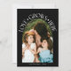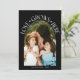 Modern and elegant Valentine's Day photo template card featuring an arch framed photo with a text around it that says "Love Grows Here" with hearts. You can add another picture and a message on the back of the card. Black.
