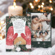 Entra na magia da estação com o nosso maravilhoso cartão de saudações de ilustração de luvas de Natal. Adornada com neve e estrelas em segundo plano, duas luvas vermelhas alegres com pontos brancos e berço de padrão uma carta de Natal sincera, radiando calor e alegria. Esta ilustração caprichosa captura o espírito da celebração festiva e a alegria de compartilhar desejos de feriado. Mande um toque de magia sazonal para seus entes queridos com este charmoso e animador cartão de Natal. Adicione 3 fotos da sua família atrás. A cor de fundo verde é totalmente editável!
